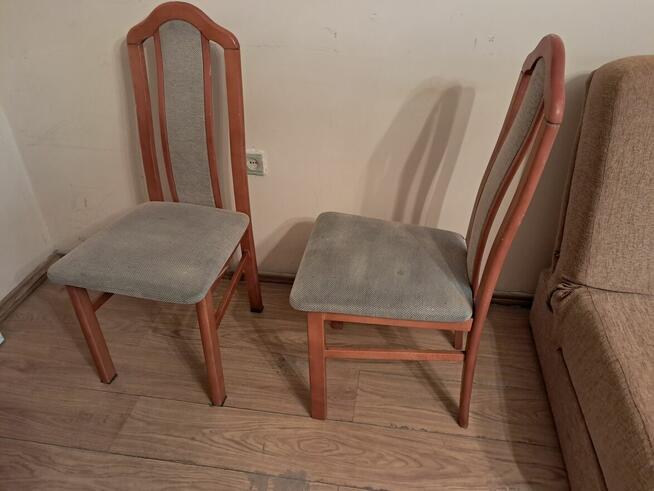 Solidny duży stół z krzesłami.Z drewna bukowego w stanie bardzo dobrym. Dodatkowo 4 krzesła.Wymiary stołu długość ...