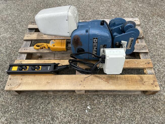 DWUBIEGOWY WCIĄGNIK ŁAŃCUCHOWY Z WÓZKIEM JEZDNYM ELEKTRYCZNYM 1000kg DEMAG prod. Niemiecka WCIĄGNIK - stan ...