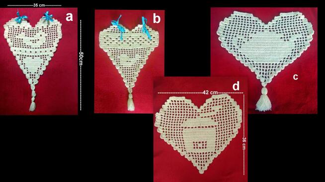 Szydełkowe zawieszki/ozdoby Serduszka Można przewlec kolorową błyszcząca wstążkę i zawiesić np.w oknie,lub ...