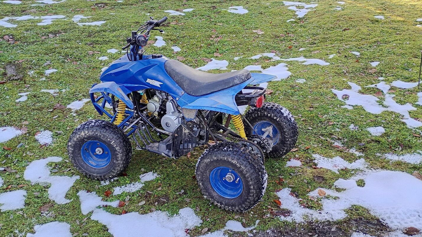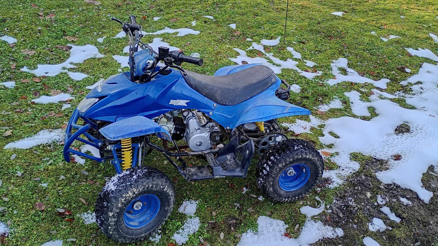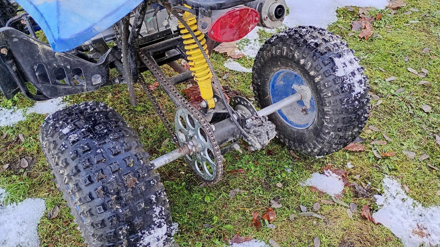Quad ostatnie dwa lata nieużywany, odpalany sporadycznie. Zajmuje mi miejsce. Dzisiaj odpalany – odpalił, ale nie trzyma obrotów. Prawdopodobnie gaźnik do czyszczenia. Z tej racji, że wymaga ogarnięcia sprzedaję jako uszkodzony.